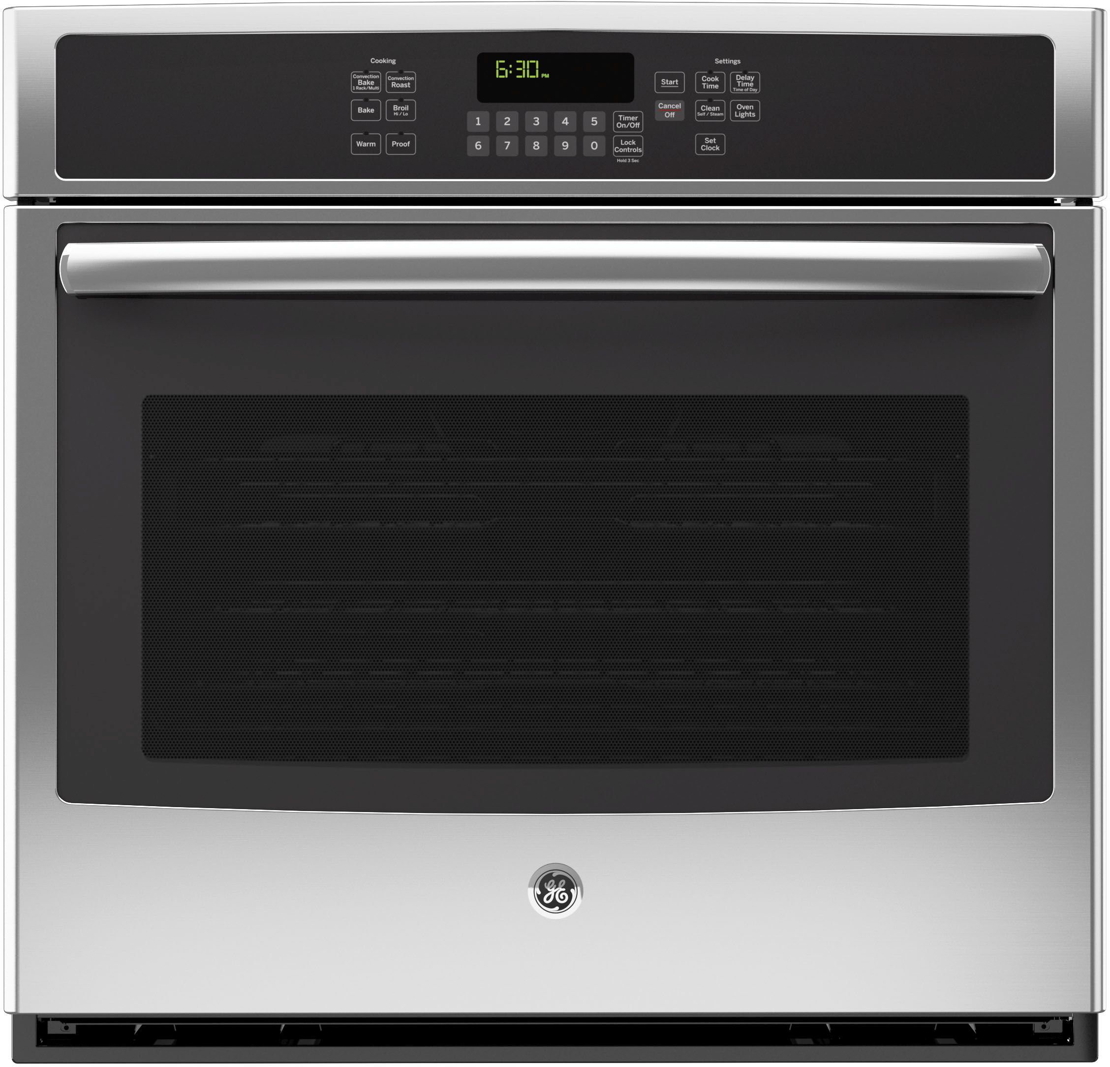 GE® 30" Electric Single Convection Oven Built In-Stainless Steel with 5.0 cu. ft. capacity, self clean with steam option, hidden bake oven interior and control lock capabilityRead More